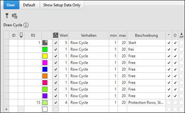 - Select the desired available entry (color) from the User tab and enter in the control column.