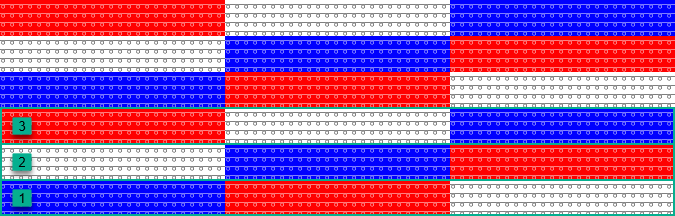 The second search color relates to the second area in the pattern and the third in the same way to the third area.