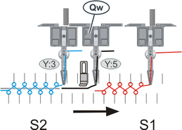 W Machine - Weft Yarn Carrier Qw - Weft yarn carrier types Qt1, Qt2 und Qt3 are special yarn carriers with different driving width that will be driven ahead in the same system.