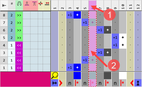 - In the Pattern Row control column, select the first 2 pattern rows.