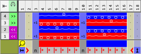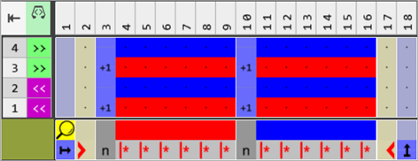 button in the ribbon. - The Color Arrangement Editor with the original standard knitting process of the 2 selected pattern rows is opened.