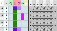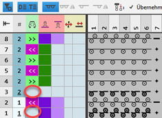 | Ungrouped technical rows: All pattern rows are drawn-in one-to-one in the design pattern. This means that the corresponding number of pattern rows will be overwritten in the design pattern. |