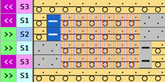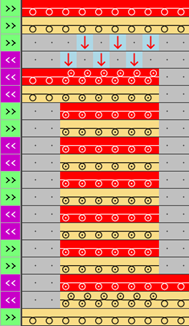 The knitting element depends on the carriage stroke and can must be entered on the corresponding pattern row of the Design Pattern.