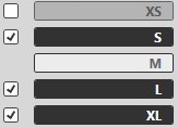 - The added sizes S, L and XL appear in the Measure Table with the calculated measures if the display option