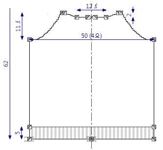 - Rechteckiger Bereich auf der Grundlinie ist für den Anfang reserviert