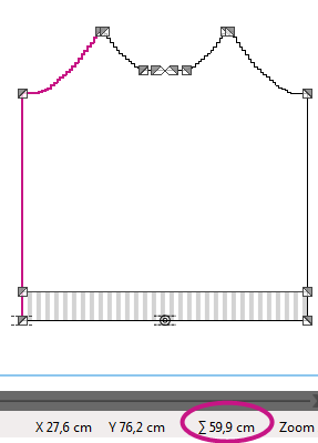 Die gesamte Länge mehrerer selektierter Schnittlinien wird in der Statuszeile angezeigt