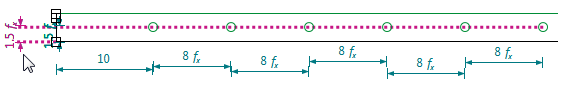 - Insert the horizontal dimensioning for the first button starting from the left.
