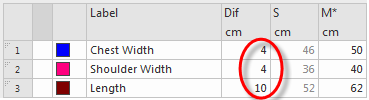 • The grading definitions determine the modification of an independent measure switching from one size to the next.