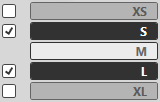 - En el cuadro de grupo Tamaños desactivar las casillas para XS y XL.