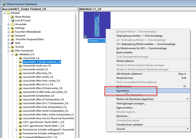 - Den korrekten Dateityp für die ausgewählten Module selektieren und bestätigen.