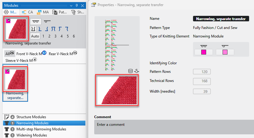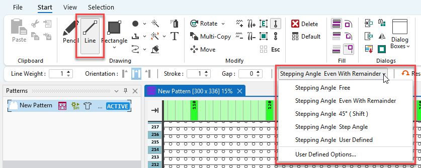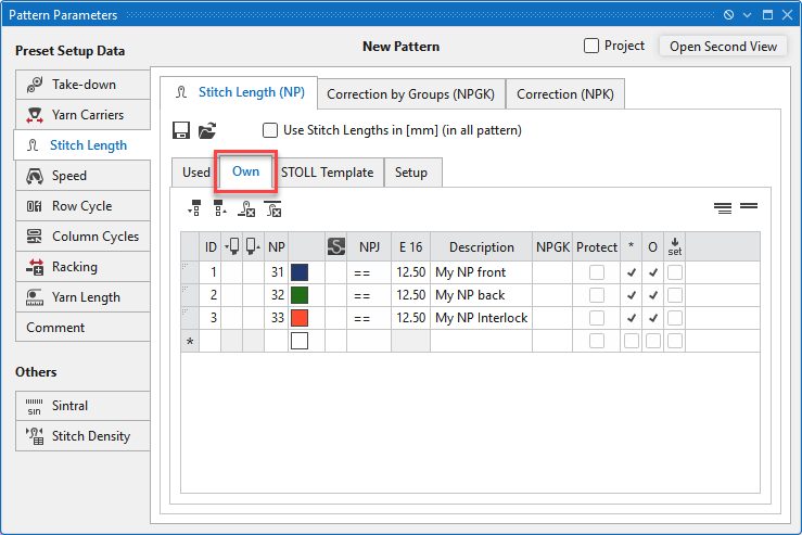 - Change the knitting technique in the Pattern Properties dialog box of a pattern.