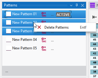 You can select several entries simultaneously in the Patterns or Shapes tool window.