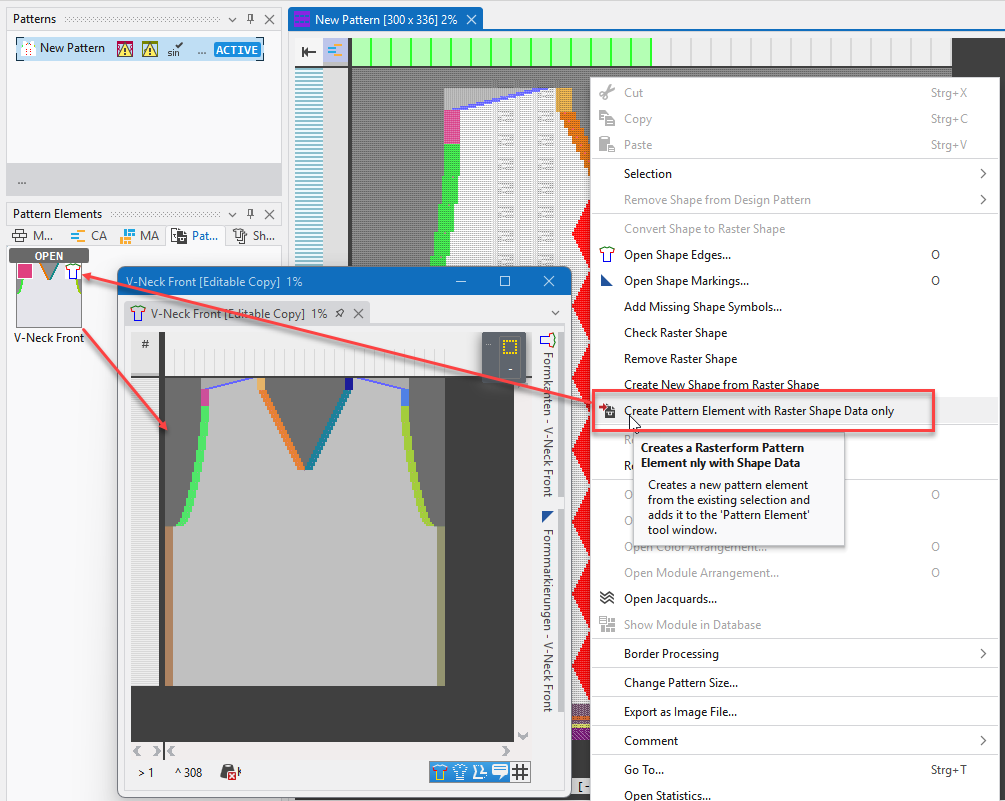 - Call up Create Pattern Element with Raster Shape Data only function of the context menu.
