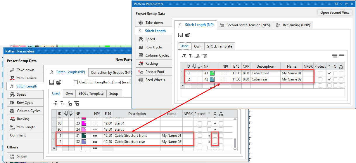In addition, define the SPIN2 type in Pattern Parameters / Feed Wheels / Y -> Group or via Yarn Carrier View / Group Feed Wheels.