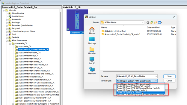 - Den korrekten Dateityp für die ausgewählten Module selektieren und bestätigen.