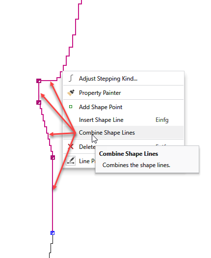 - Click the Combine Shape Lines function of the context menu.