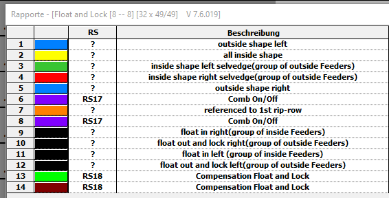 Hier können vorhandene Reihen mit der Farbe überschrieben werden. Diese Reihen müssen aber dann aus dem Rapport Float out and lock right entfernt werden. - 118
