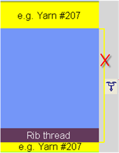 Bringen Sie den Fadenführer vor den Rippen in die Klemme und bringen sie ihn für die Schutzreihen wieder ins Muster.
