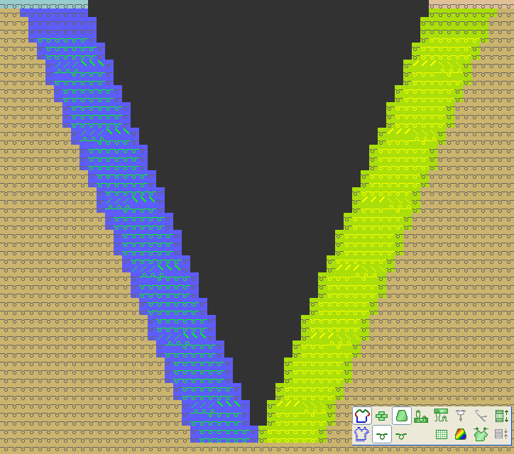 - Bereich außerhalb Form im V-Ausschnitt mit den Ausricht-Symbolen füllen.