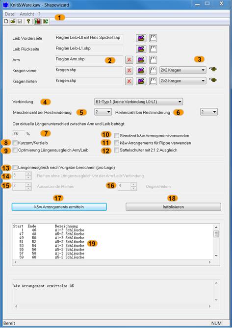 k&w Arrangements: Generieren der Strickabläufe, die k&w- Datei kann gespeichert werden. | ||||