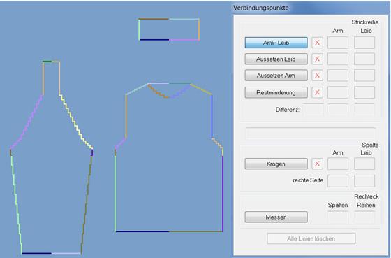 - Der Strickablauf für die Arm- Leibverbindung wird bis zur Verbindungslinie eingetragen.