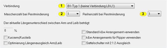 die Strickart 2x2 Kragen vorne/hinten festlegen.