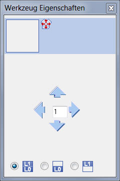 Eingabe einer Zahl (Faktor): Verschieben des selektierten Elements pro Klick auf einen Richtungspfeil um den eingegebenen Faktor |