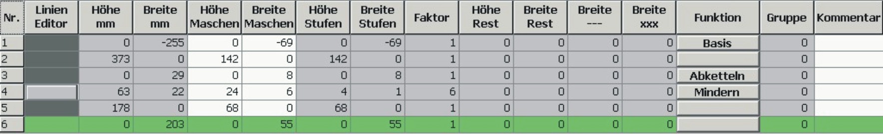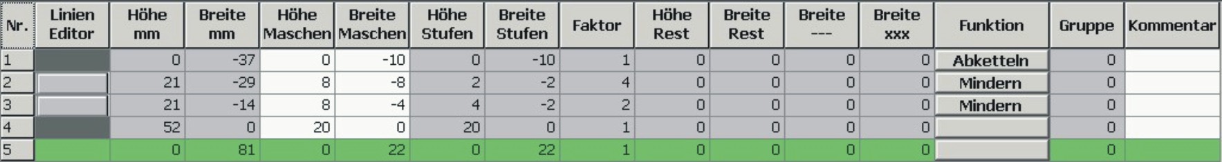- Soll im Schlittenhub von links nach rechts abgekettelt werden, so muss die Höhe geradzahlig sein.