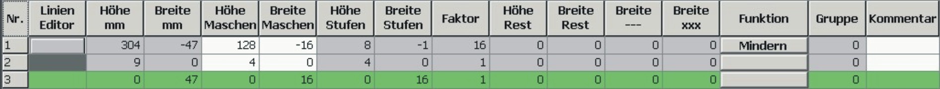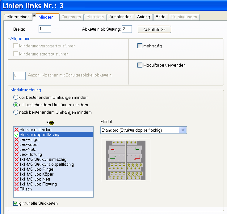 II. Doppelflächiges Mindern mit beliebiger Minderbreite: