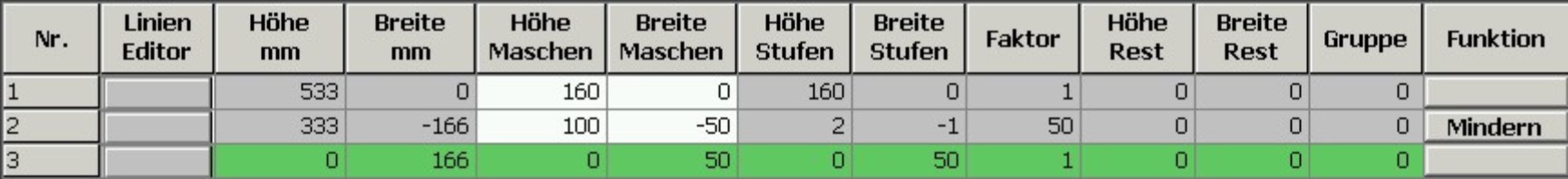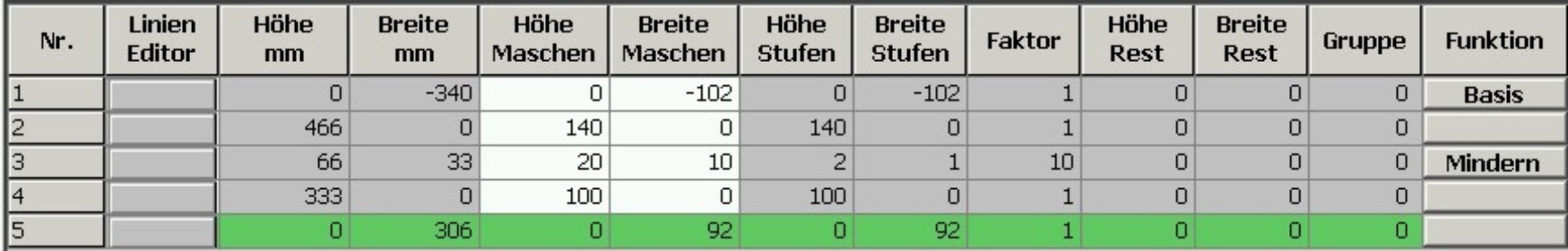 - Im Modul-Editor den Strickablauf mit Nadelaktionen zeichnen.