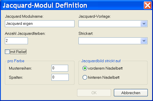 - Das eigene erstellte Jacquard-Modul kann im Dialog Jacquards auswählt werden.