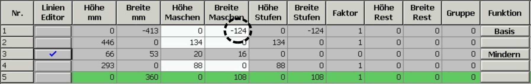 Die Gesamtbreite der Form sollte durch 4 teilbar (Modulbreite der 2x2 Rippe) sein. Das Resultat der Division muss geradzahlig sein. Beispiel: Gesamtbreite 144 geteilt durch 4 = 36 |
