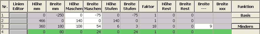 - Schnittelemente für linkes und rechtes Grundelement eingeben.