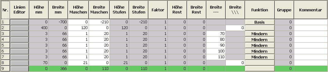 - Um das Modul der Kantenline 3 an der richtigen Stelle zu platzieren, in der Spalte den Wert 70 eintragen.
