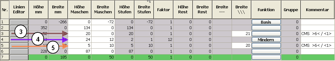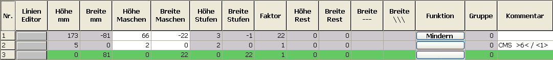 - Der Dialog Linien links Nr.: 1 wird geöffnet.