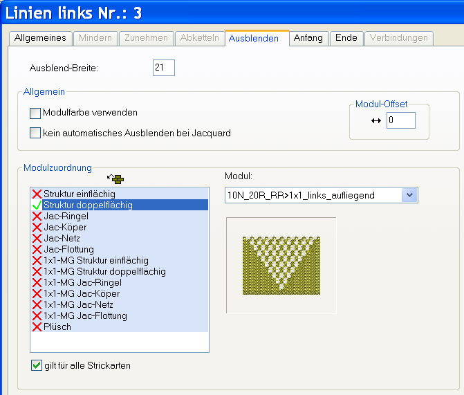 - Die Ausblend-Breite wird automatisch eingetragen.