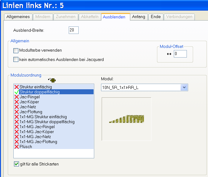 - Den rechten Kanten des Grundelements Nr. 3, 4, 5 Ausblend- und Mindermodule für rechte Seite zuordnen.