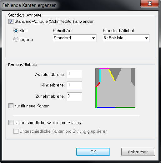 - Unter der Rubrik wird 8: Fair Isle U eingestellt.