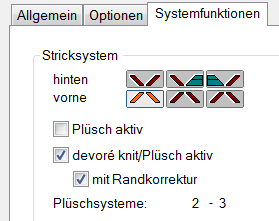- In der Registerkarte , unter die Funktion devoré knit/Plüsch aktiv einschalten.