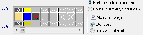Die Farbe für den Bindefaden muss in der Farbfolge vorlaufend sein. Das Kontrollkästchen Maschenlänge aktivieren. Dadurch wird die im Jacquard-Modul vorhandene Maschenlänge in das Muster übernommen.