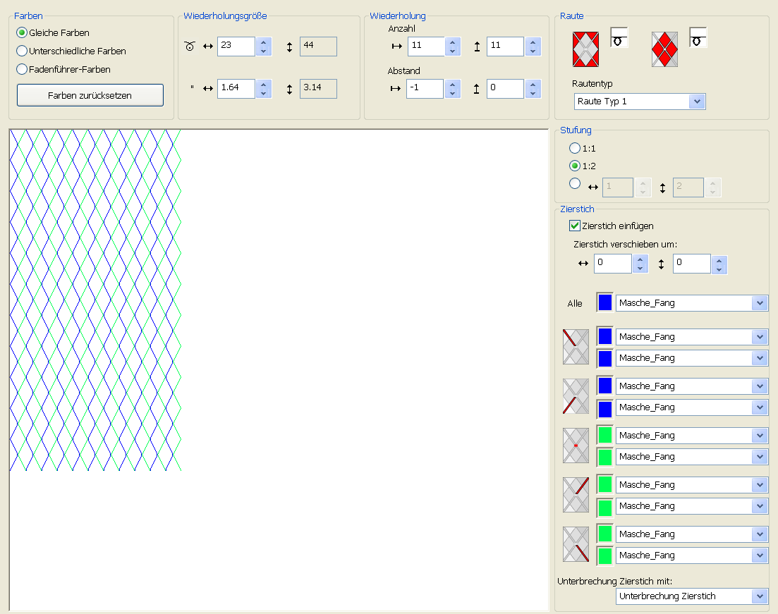 - Im Dialog Argyle in den Auswahlmenüs für Zierstiche das Modul auswählen.