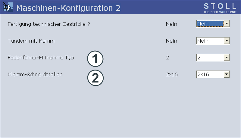 Stoll-Betriebssystem V 1.1 (oder höher) muss in der Maschine installiert sein.