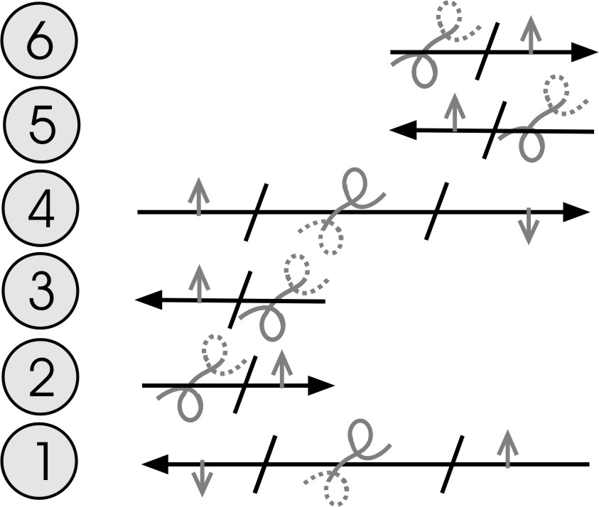 Stricken der Rückseite (L1) und der Vorderseite (L0). |