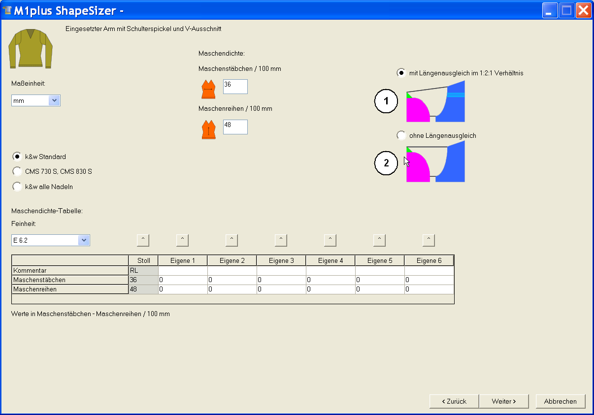 - Die Maßeinheit und die Maschendichte werden zur Weiterbearbeitung verwendet.