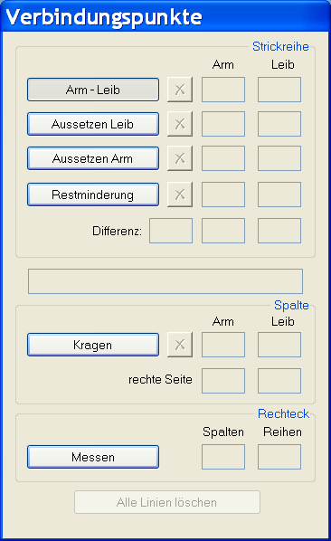 Während dem Setzen der Verbindungslinien wird die Differenz von Strickreihen zwischen Arm und Leibteil angezeigt. |