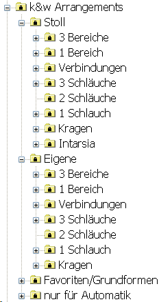 Übersicht der k&w Arrangements im Modul-Explorer Datenbank
