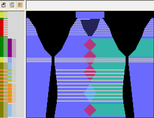 - Die entsprechenden Intarsia Musterreihen des Bereiches mit der hellblauen Raute über die Reihenselektionsleiste selektieren.