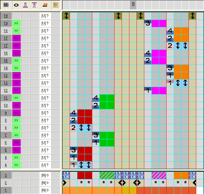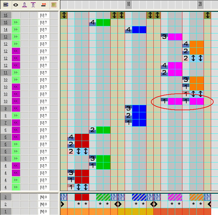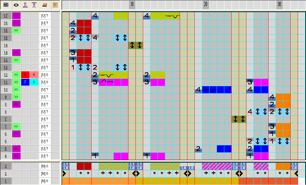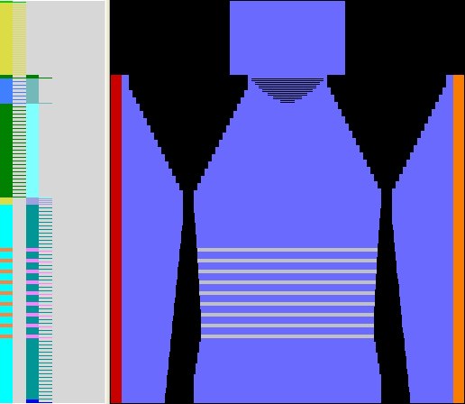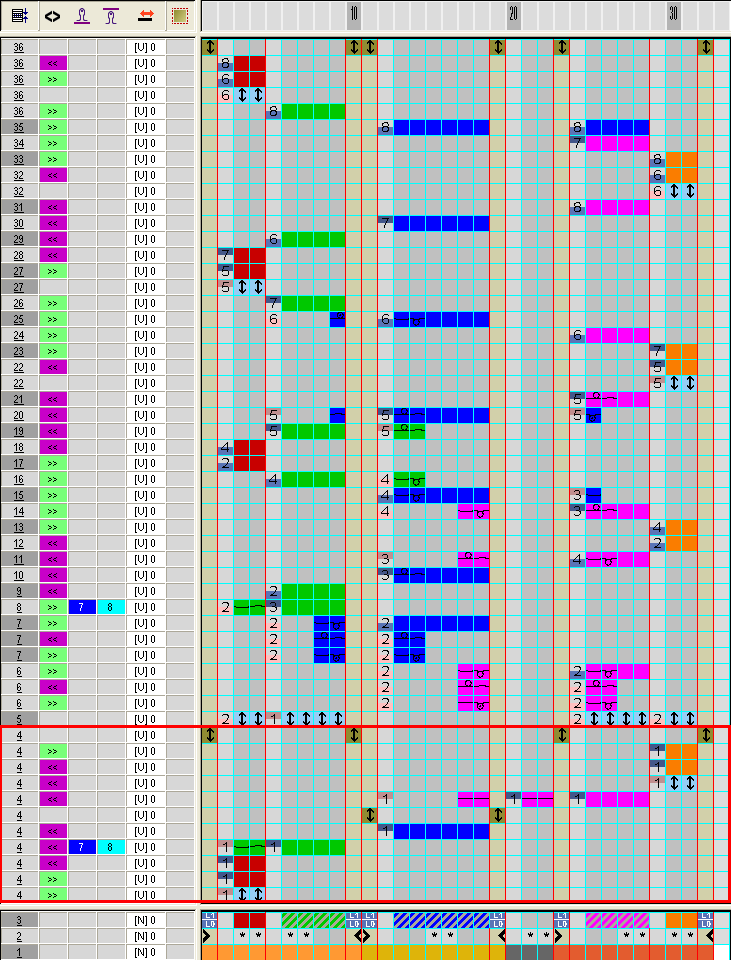 Color Arrangement: CA_C37-3 Bereiche 1:1:1 kopiert und modifiziert zum Ausstricken des Fadenführers (= Positionierung zum Stricken im Kragen)