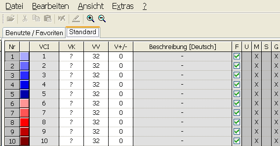 Bezeichnungen in der Versatzkorrektur-Tabelle