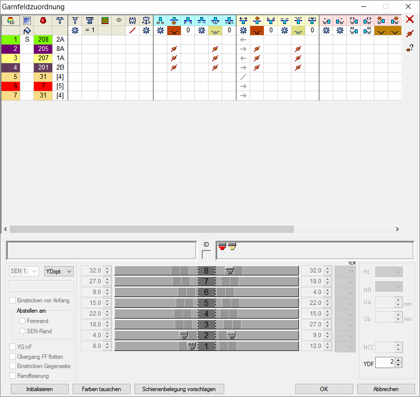 VI. Fadenführer-Belegung im Dialog Garnfeldzuordnung: